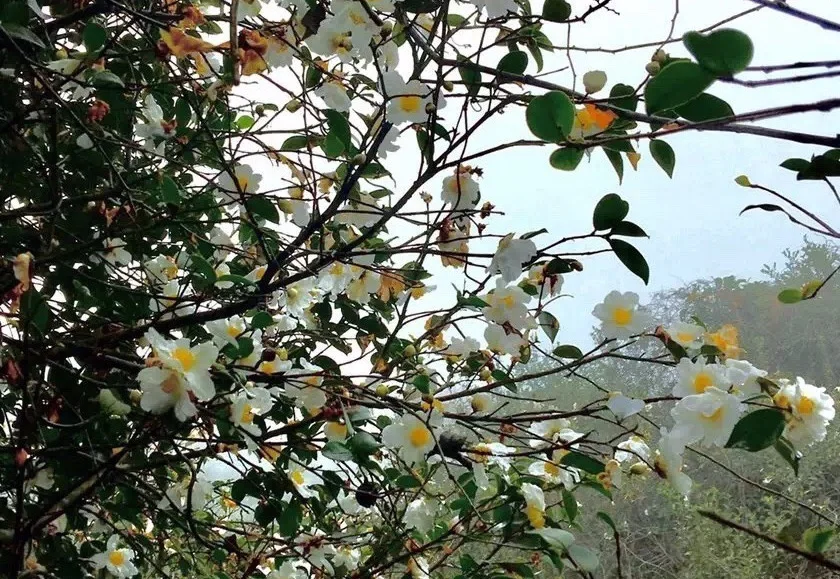 There are high mountains, steep slopes, cliffs and crags everywhere. The narrow winding paths, remote from the main road, are difficult to pass. Yet this is also the natural distribution zone of wild camellia trees. On almost every hillside grows the wild camellia trees. Every year after frost descends along the sides of mountain roads, amid the overgrown brambles, camellia flowers are in full bloom. During the season when the leaves of most trees wither and fall, the blossoming camellia flowers reveal an indomitable tenacity that would impress the world!